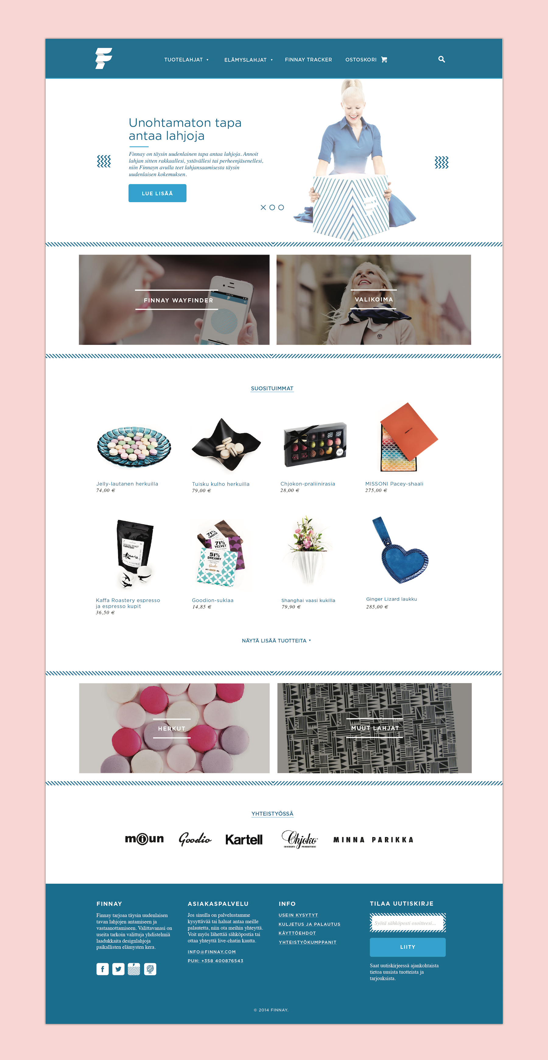 Finnay is a new way to give a gift to your friends or loved ones. It mixes treasure hunt with the excitement of receiving a gift. Using your smart phone and Finnay app you move around your neighbourhood finding clues until the app takes you to your gift. The case was to design a responsive e-commerce website with some modern but simple illustrations.