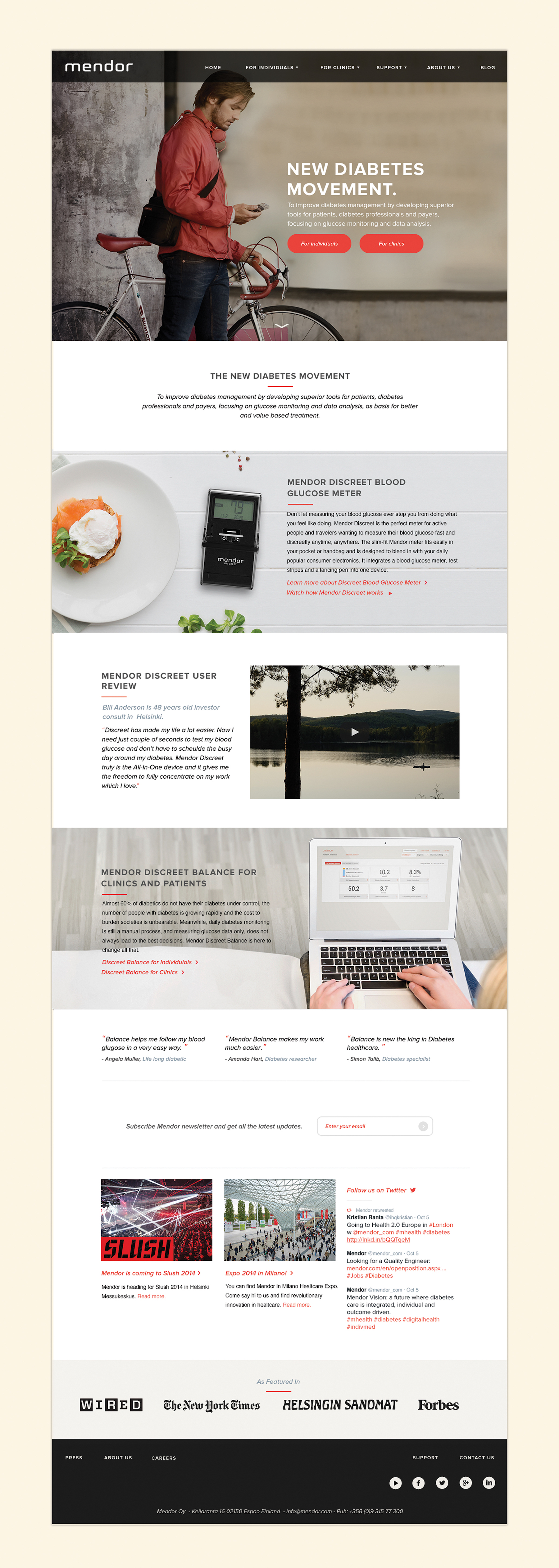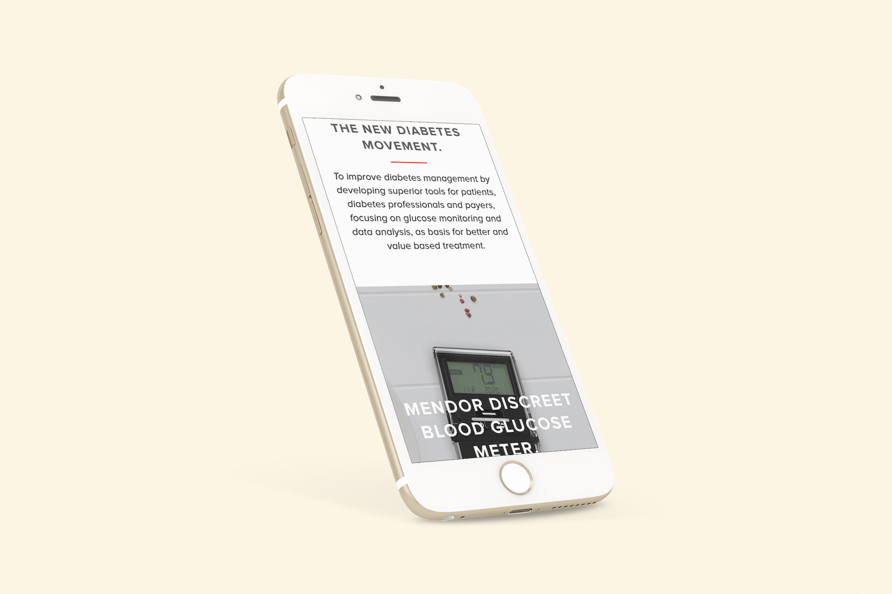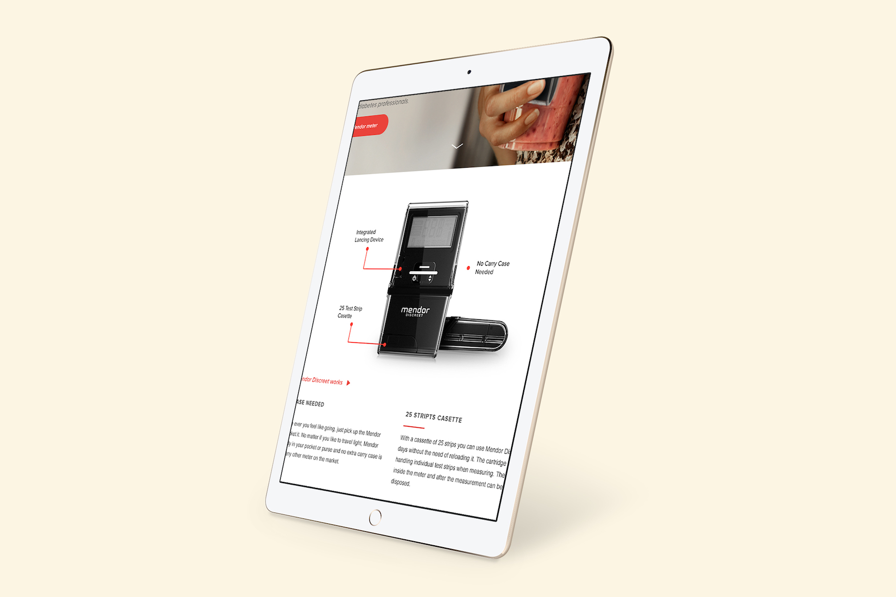 Mendor is a game changer in the field of diabetes. Mendor created an all-in-one blood glucose tester called Discreet. It is modern looking and small so it blends in to your everday consumer electronics. The case was to design a website for Mendor that is interesting for medical companies as well as for everyday Discreet users.